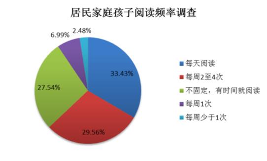从阅读频率来看,超过三成的受访居民家庭未成年子女能够做到每天阅读,整体上能够保持固定阅读习惯的比例超过六成。