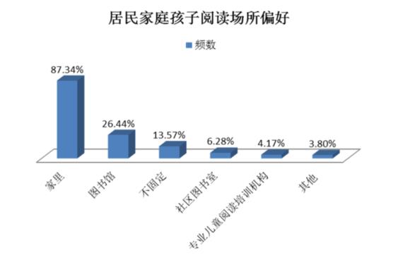 在阅读场所方面,家里和图书馆是孩子们最主要的两个阅读场所,选择阅读培训机构的比例相对较低。相对而言,女孩比男孩更偏好图书馆阅读。