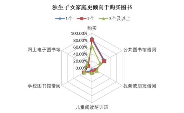 《报告》还发现,独生子女家庭相对而言更加愿意为子女购买图书,其通过购买方式获取图书的比例明显高于多子女家庭。