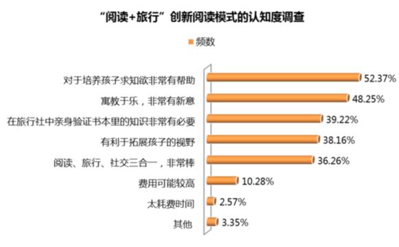 受访的家长对于当前新兴的“阅读+旅行”这一新鲜事物具有较高的接受度,不少家长倾向于让孩子在多读书的同时多出去看看。